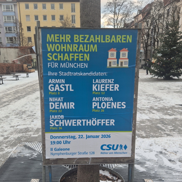 Die CSU war lange die stärkste Fraktion im Stadtrat von München, inzwischen ist sie nur noch die zweitstärkste nach den Grünen. Man müsste sie doch loben, dass sie eine vernünftige Forderung stellt, angesichts der katastrophalen Wohnsituation in der Stadt. Wenn es nur eine Möglichkeit gäbe, dieses politische Ziel auch durchzusetzen, wo Grüne, SPD, Linke und alle anderen seit Jahrzehnten gegen bezahlbaren Wohnraum kämpfen. Die CSU steht da offenbar völlig allein. Dabei ist allgemein bekannt, dass die Kernwählerschaft der CSU, die Aubinger und Bogenhausener Erbengemeinschaften, die Hausbesitzer und Vermieter in München nichts so sehr wünschen wie bezahlbaren Wohnraum. Wenn die CSU dann im März die Mehrheit im Stadtrat zurückerobert hat, wird sie hoffentlich irgendwann auch einmal die Bayerische Staatsregierung und die Bundesregierung stellen und dort dafür sorgen, dass die gesetzlichen Grundlagen für bezahlbaren Wohnraum geschaffen werden.